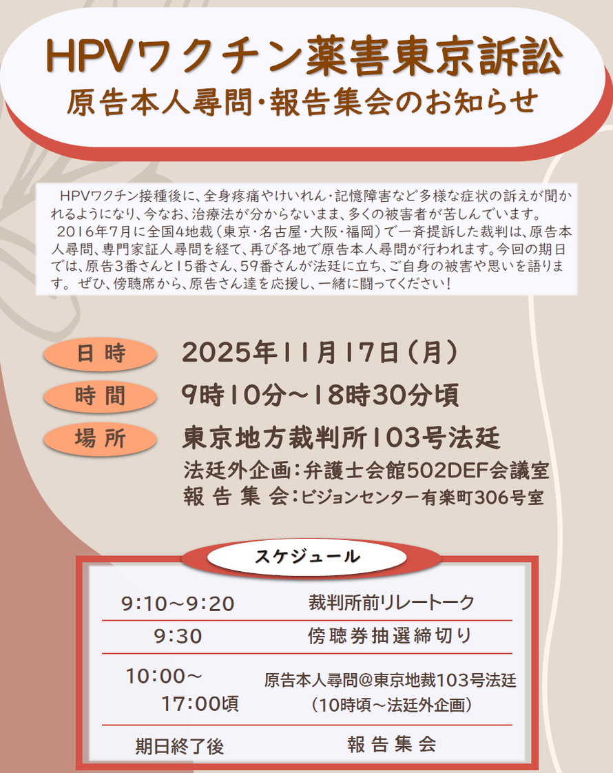 11月17日 10:00~ 東京地方裁判所(原告本人尋問)